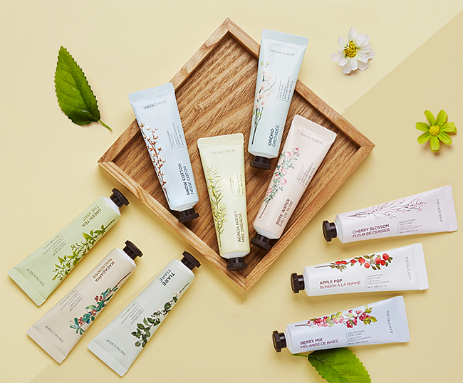 Sản phẩm được thiết kế tuýp nhỏ gọn 30ml để đem theo bên mình sử dụng bất cứ lúc nào khi đôi bàn tay khô ráp. Vỏ ngoài được làm bằng nhựa dễ bóp sản phẩm khi sử dụng gần hết. Sản phẩm có màu xám xanh nhẹ nhàng điểm nhấn là nhánh hoa Tiare và tên sản phẩm in ở góc dưới bên phải để dễ dạng hương của sản phẩm. Vì The Face Shop sản xuất tổng cộng 10 mùi hương dành cho sản phẩm dưỡng da tay.